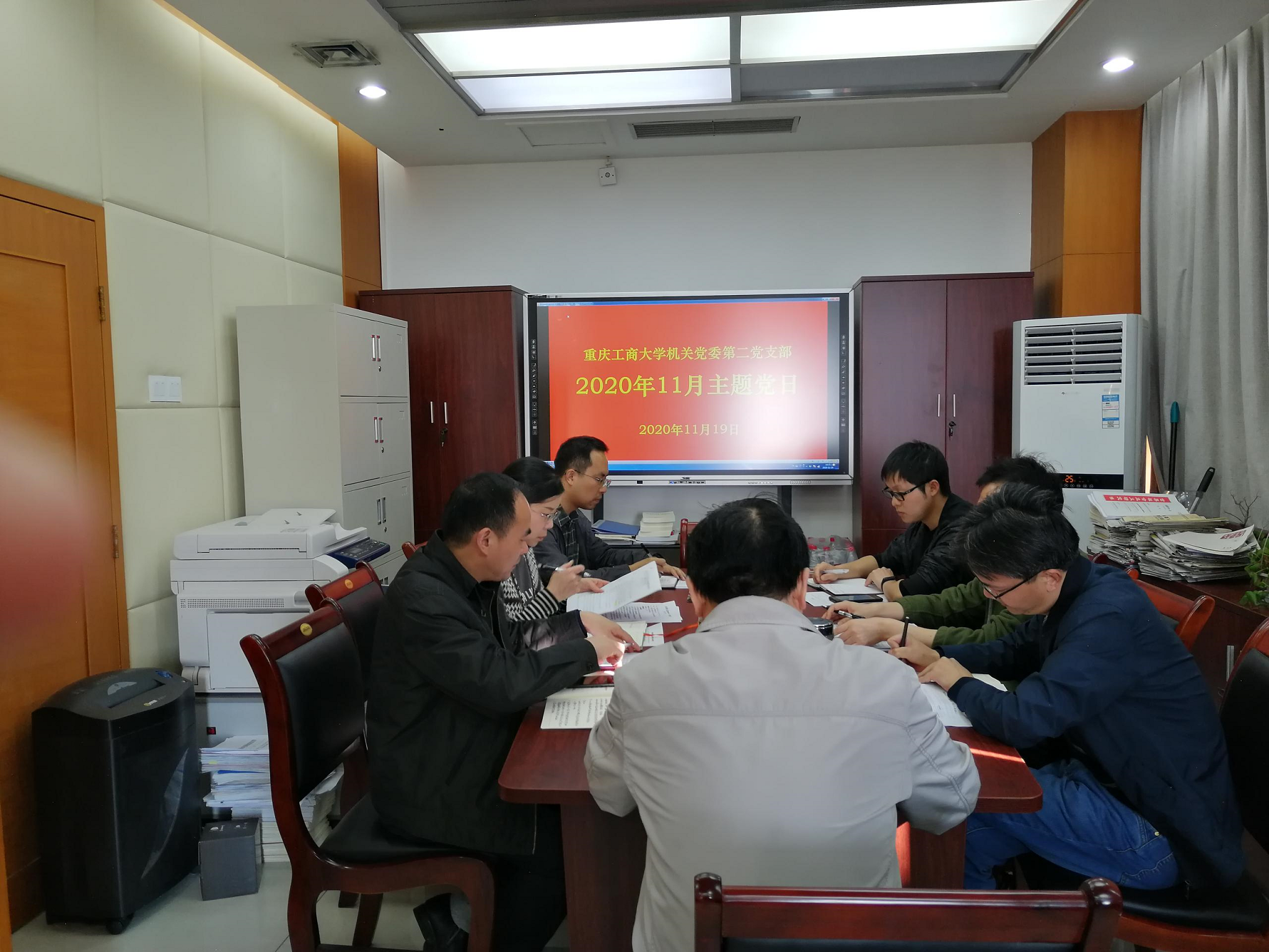 11月19日下午,机关党委第二党支部组织全体党员在厚德楼6002室召开党员大会暨2020年11月主题党日,会议由支部书记米密主持,支部全体党员参加会议,学校党委常委、纪委书记、监察专员周航作为普通党员参加了支部活动。