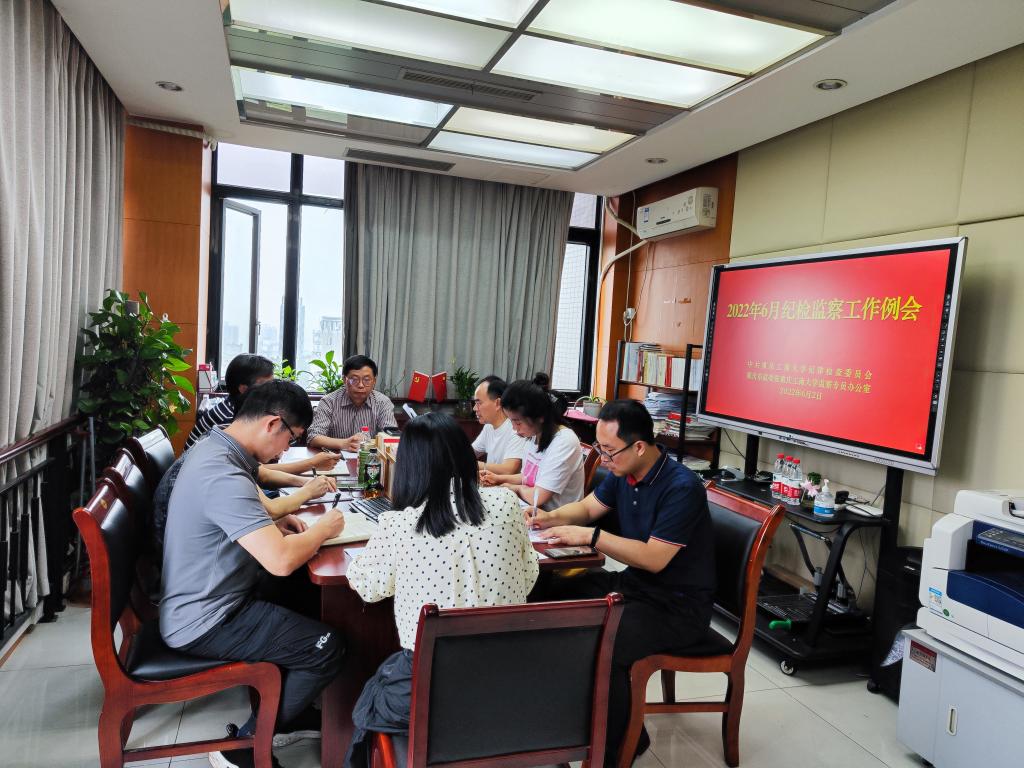 6月2日上午,学校纪委监察专员办公室在学校厚德楼6002室召开2022年6月纪检监察工作例会。会议由学校党委常委、纪委书记、监察专员周航同志主持,全体专职纪检监察干部参加会议。