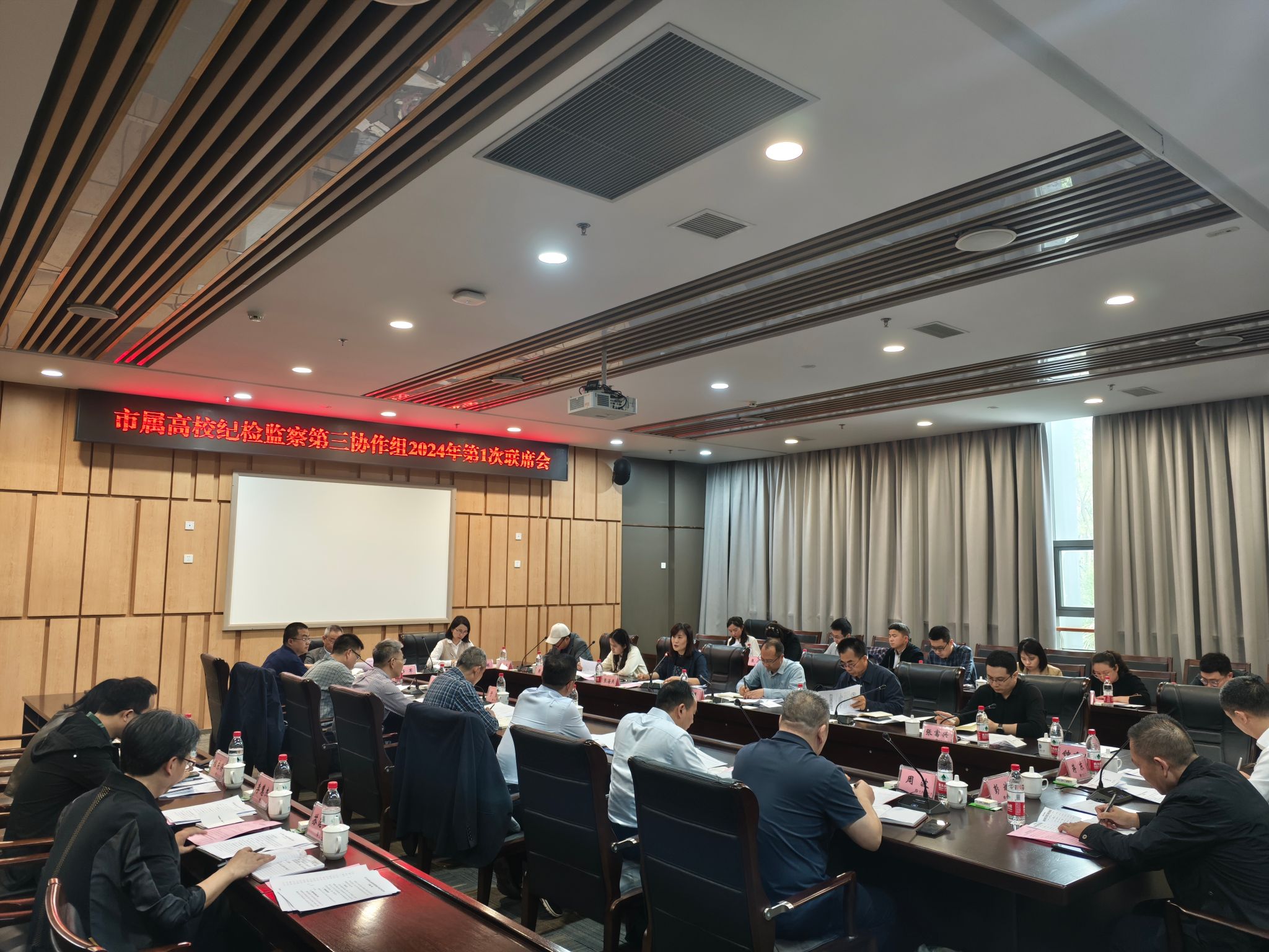 3月29日下午,市属高校纪检监察工作第三协作组2024年第1次联席会在我校召开。市纪委监委第三监督检查室主任周勇、副主任张富兴、干部黄琳,驻市教委纪检监察组二级巡视员谢明轩出席会议,第三协作组成员单位纪委书记、分管协作工作领导、联络员参加会议,会议由学校党委常委、纪委书记、监察专员张海燕主持。