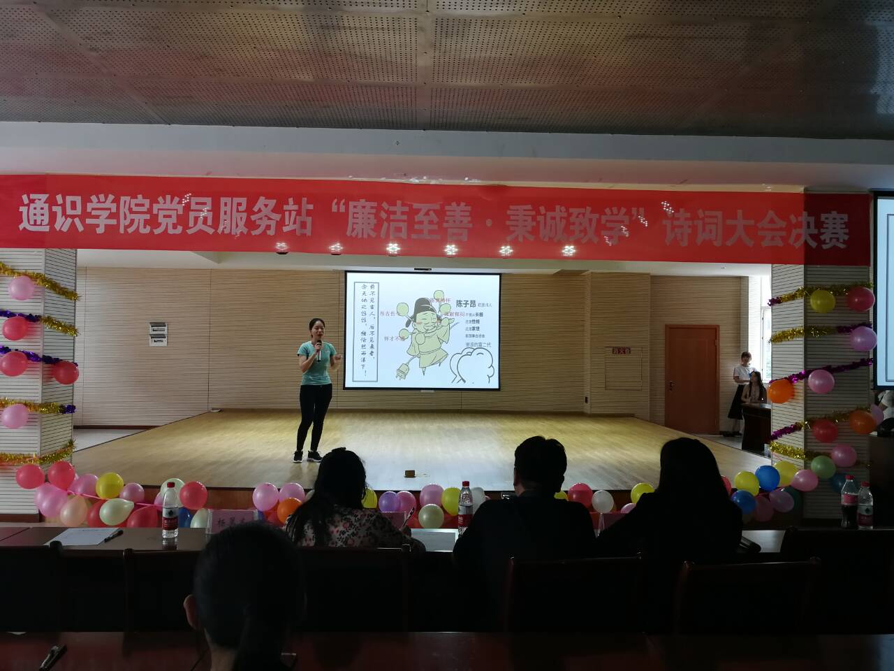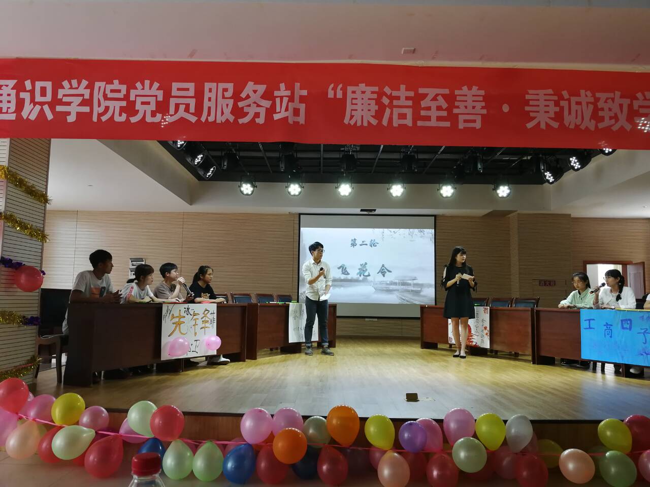 为进一步贯彻落实学校有关在学生中大力开展廉洁诚信教育的有关要求,进一步推进廉洁文化深入校园,树立青年学子廉洁意识,提升廉洁诚信素质,培养正确的价值观和道德情操,促使广大学生健康成长为社会主义的合格建设者和可靠接班人,我校通识学院党员服务站举办了主题为“廉洁至善,秉诚致学”的诗词大会活动,活动得到了全院学生积极踊跃参与,对廉政文化建设的持续深入起到了良好的助推作用。