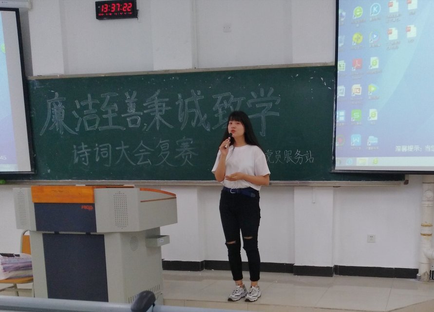 本活动历时近20天,包括初赛复赛和决赛等环节,有来自5个公寓楼栋100余个寝室的160余名同学参加了活动,通过初赛的答题选拔,有20余名同学进入复赛,复赛问答,决出16名同学进入决赛角逐。为紧扣主题和贴近“廉洁诚信”主题,党员服务站的同学们准备了多达200首诗词的题库供选,其中包括古代涉及廉洁诗词中比较著名的如李商隐《咏史》、况钟《拒礼诗》、于谦《咏煤炭》、《石灰吟》、吴讷《题贿金》等。