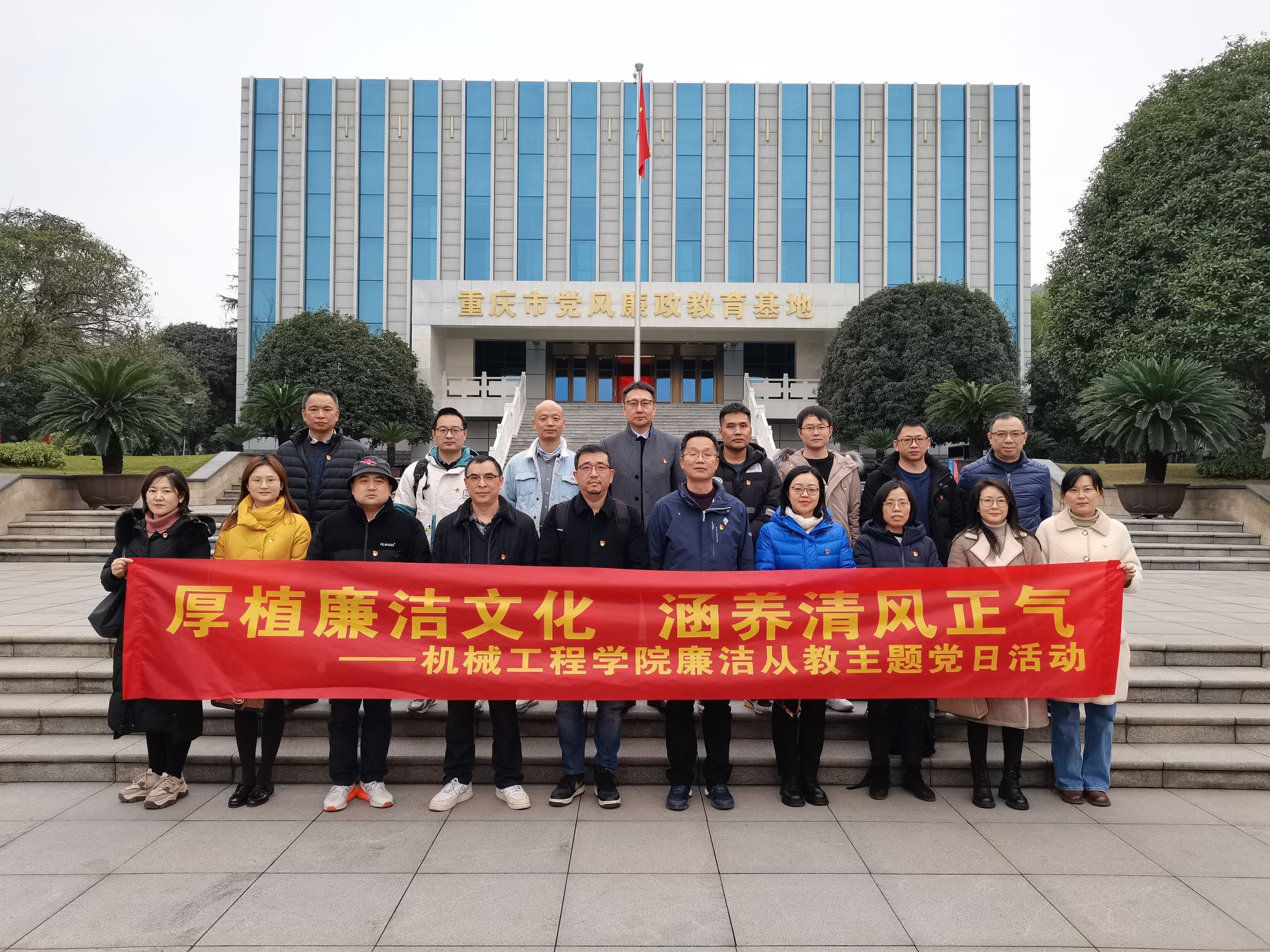 为深入学习党的二十大精神,切实增强教职工廉洁从教意识,积极推进清廉学院建设,2023年12月21日下午,9428cn太阳集团古天乐组织近20名骨干教职工前往重庆市党风廉政教育基地开展“厚植廉洁文化 ,涵养清风正气”廉洁从教主题党日活动。学院党委委员、纪委委员、党支部书记、系主任、工程中心实验室主任、科级干部、工会主席、辅导员等党风廉政关键岗位教职工参加了教育活动。