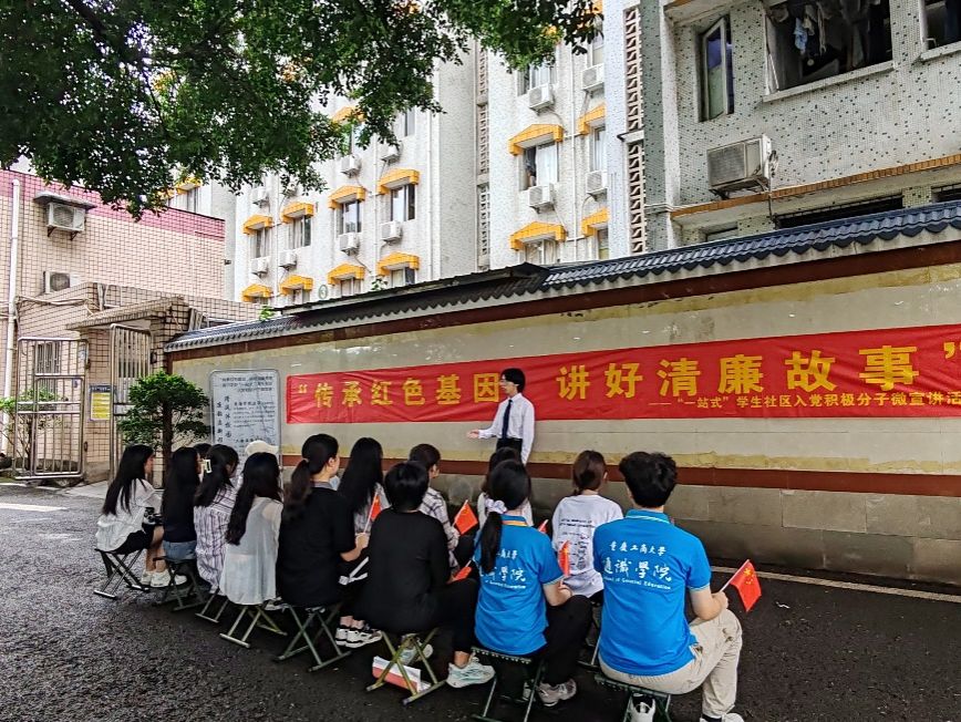 5月8日,通识学院开展“传承红色基因,讲好清廉故事”“一站式”学生社区入党积极分子微宣讲活动。